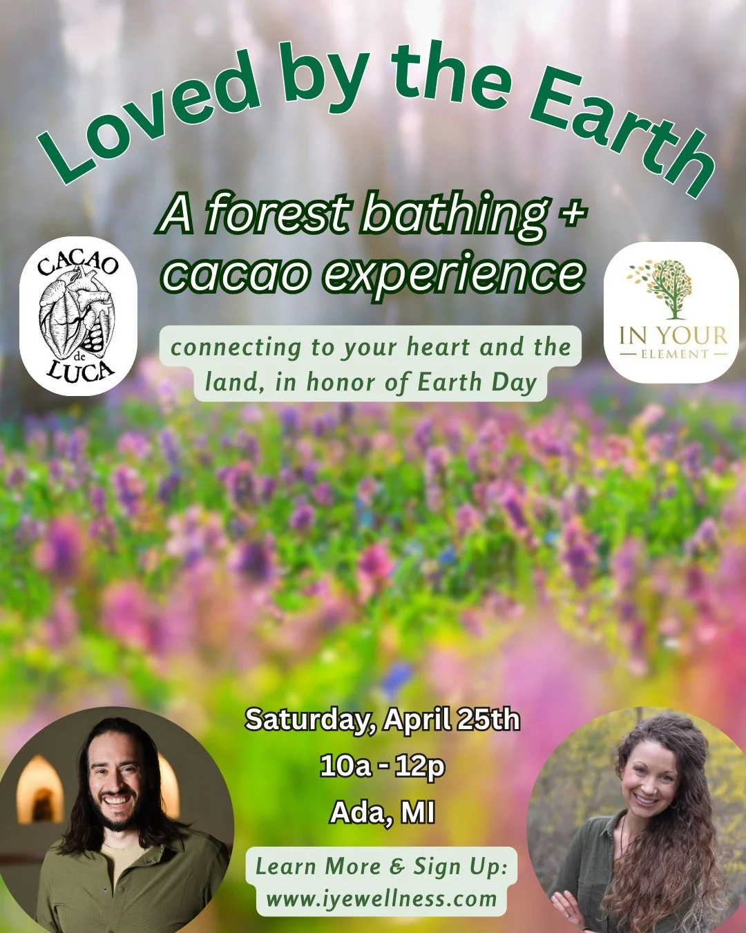 Led by Katie Venechuk of In Your Element Wellness and Ryan DeLuca of Cacao de Luca, Loved by the Earth is a gentle experience of reconnection and reciprocity in our relationship with nature, inspired by the teachings of Robin Wall Kimmerer.